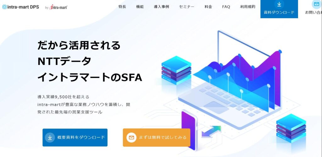 | intra-mart DPS for Sales | 株式会社NTTデータイントラマート | 業界後発ならではの、これまでのSFAの欠点を補った日本向け営業支援システム 非常に強力な紙資料取り込み機能やExcel連携で既存の管理を簡単にデータベース化可能 |