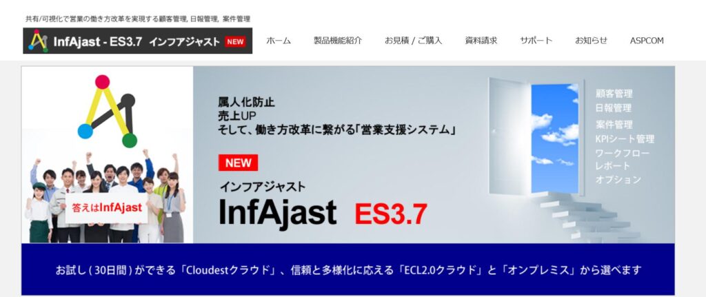 | infAjast オンプレミス | クラウド | 株式会社エーエスピーコム | 運用方法や機能を必要な分だけ選べる案件・商談管理システム | 要見積もり |