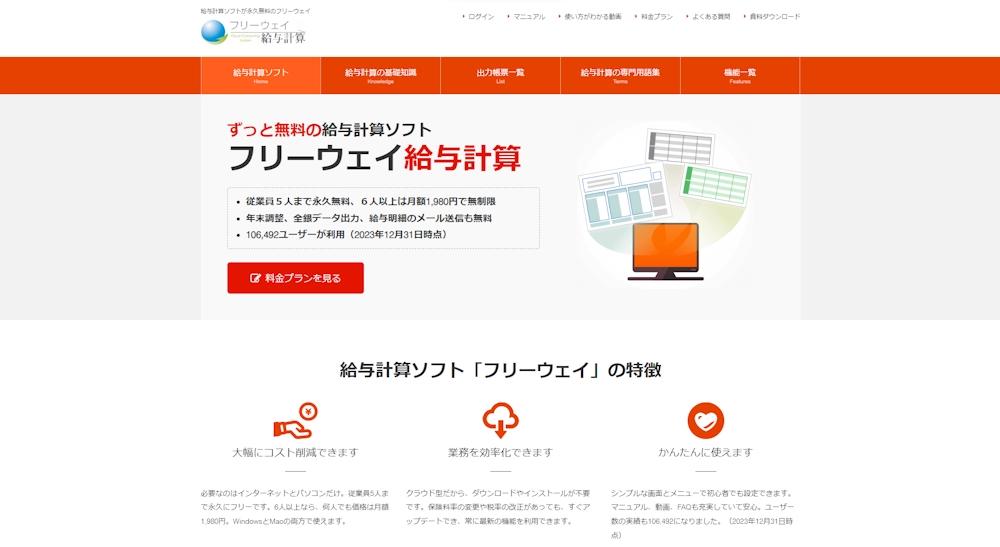 フリーウェイ給与計算は、従業員数5人まで無料で利用できる、シンプルで使いやすい給与計算システムです。