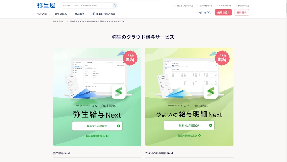 弥生株式会社が提供する給与計算と給与明細発行に対応したクラウド型の給与計算ソフトです。すべての機能が1年間、無料で利用できます。