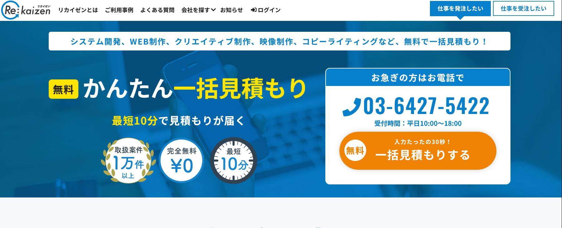 取り扱い案件は1万件を超えており、小さなプロジェクトから取り扱っているため中小企業にもおすすめです。