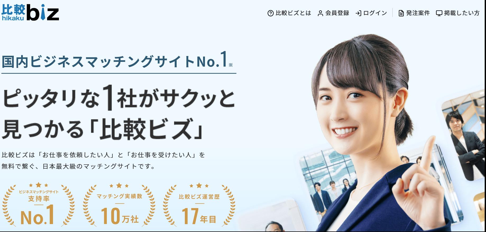 比較ビズ | 株式会社ワンズマインド | 日本最大級のマッチングサイト | 受注側 月額15,180円 発注側 無料 |