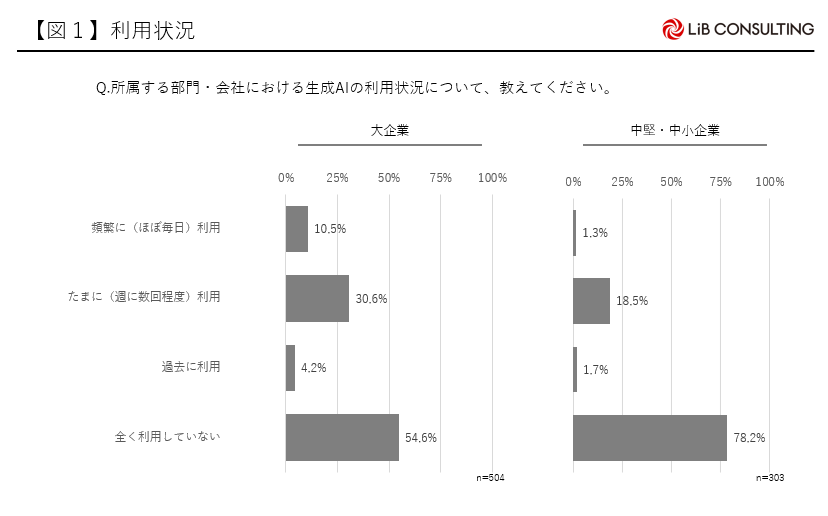 2024年6月28日、リブ・コンサルティングが発表した大企業と中堅・中小企業の生成AI利用実態調査結果について、主なポイントをまとめます。